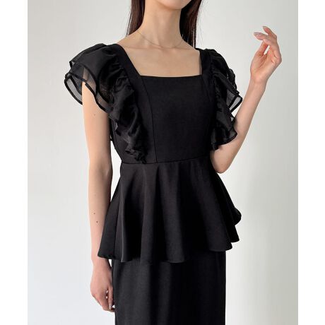 バックリボンフリルタイトワンピース