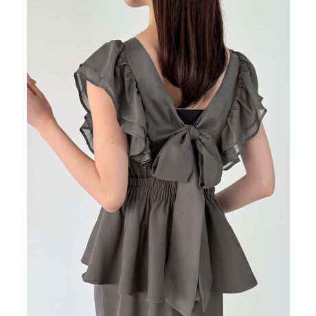 バックリボンフリルタイトワンピース