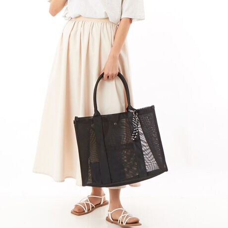 涼し気なチュールメッシュがシーズンを先取りしてくれるビッグトートバッグ。
