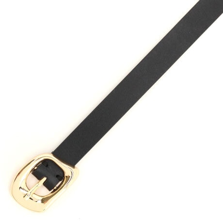 ゴールドの変形バックルがデザインポイントの牛革ベルト。