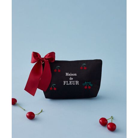 上品なサテン生地に刺繍でチェリーを表現したポーチ。