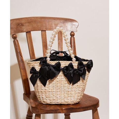 \毎年人気のかごバッグに新作デザインが登場!/フロントのサテンリボンとパールの持ち手が大人可愛いかごバッグ。