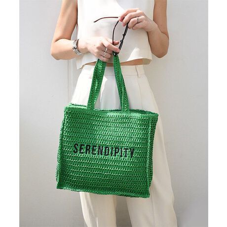 夏らしい抜け感と軽やかさを演出するペーパー素材の編み地に、「SERENDIPITY(素敵な偶然)」の文字を刺繍でプラス。