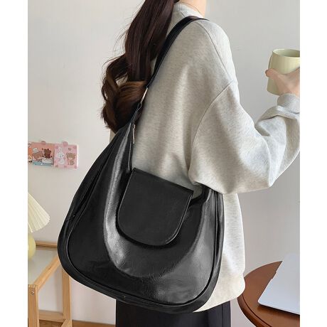丸みを帯びたフォルムが柔らかい印象を与えるフラップ肩掛けバッグ。