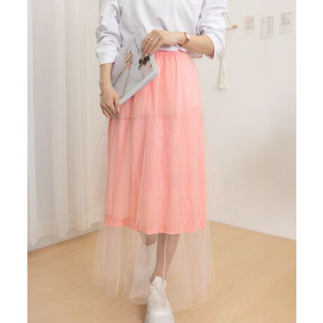 軽やかなチュール素材がエアリーなシルエットを演出するティアードスカート