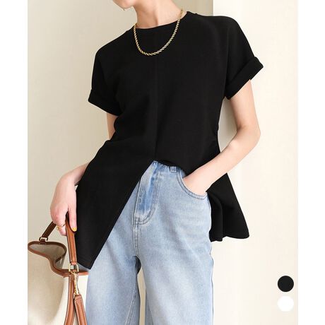 シンプルながらも洗練された印象を与える半袖カットソー。