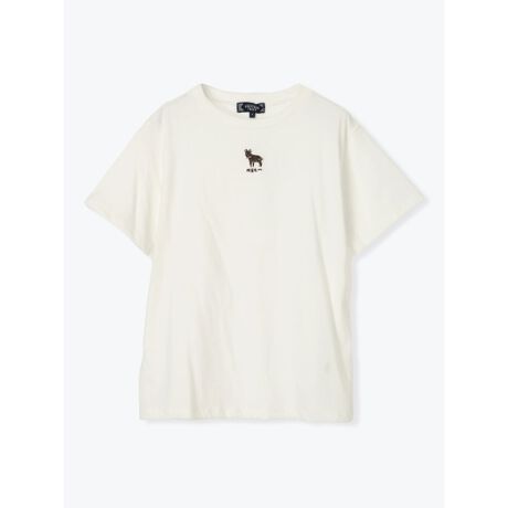 アニマル刺しゅうのワンポイントが可愛らしいTシャツ。