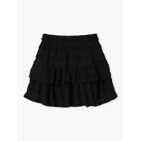 フリフリの生地を重ねたティアードフリルで愛らしさたっぷりに仕上げたミニスカート。