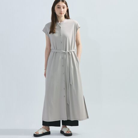 一枚でワンピースとしてはもちろん、ワイドパンツやロングスカートなどとのレイヤードスタイルでロングジレとしても着こなしの幅を広げます。