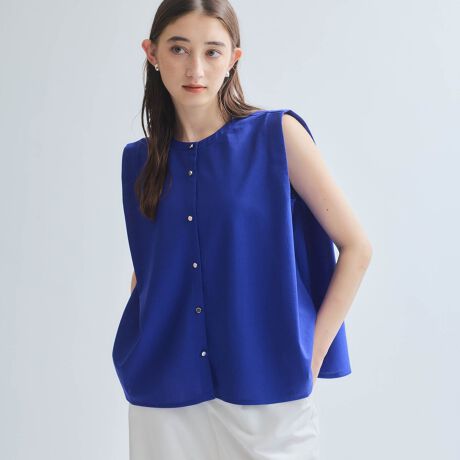 スポーツウエアなどにも採用されるカノコ素材は、カジュアルな印象に傾きがちなので、メタルボタンを採用しブラウスライクに仕上げました。