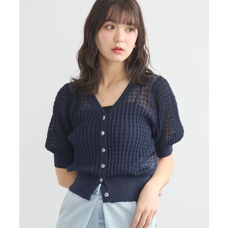 シアー素材で表現した立体感のあるチェック柄がおしゃれなカーディガン。アウトラインをリブで切り替えたメリハリのあるコンパクトなシルエットで華奢見えを叶えます。フロントのニュアンスクリアボタンが上品なアクセントをプラス。1枚さらっと羽織るだけで季節感のあるスタイリングが完成するおすすめのアイテムです。透け感[あり]