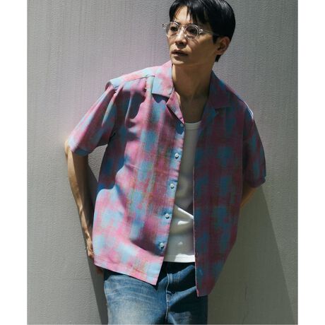 エアリーな風合いと繊細なチェック柄が映える、クレープ素材のオープンカラーシャツ。