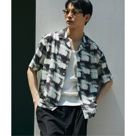 エアリーな風合いと繊細なチェック柄が映える、クレープ素材のオープンカラーシャツ。