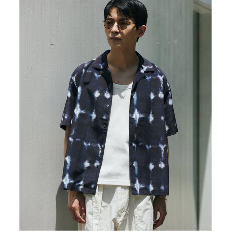 クレープ ウィロー チェック オープンカラー シャツ