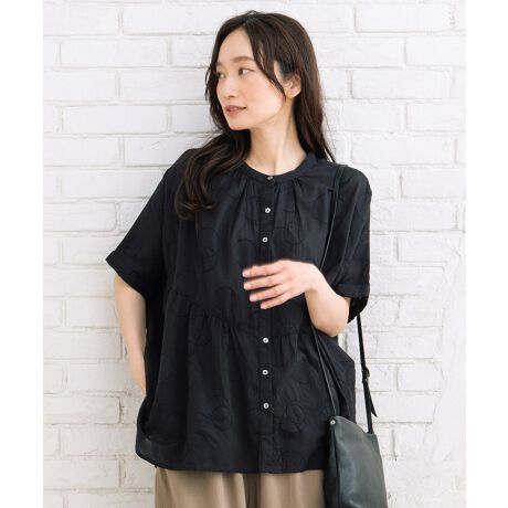 上質なインドコットンを丁寧に織り上げた、ドットジャガード生地のバンドカラーブラウス。