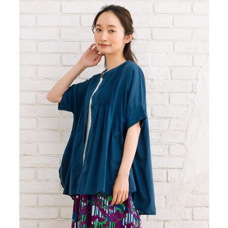 ふわりと優しい肌触りのオーガニックコットン100%仕立てのピンタックブラウス。