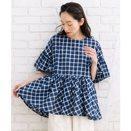 クラシカルなチェック柄を、ボリュームのあるフリル袖とペプラムシルエットは1枚で主役級の存在感。