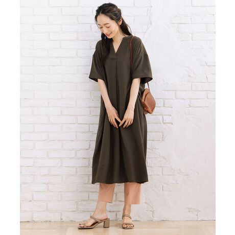 着丈もしっかりあるので、1枚でワンピースとして着るのはもちろん、パンツやスカートとのレイヤードスタイルも楽しんでいただけます。
