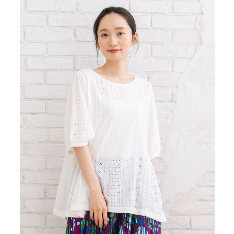 繊細なカットワークレースが目を惹く、ペプラムシルエットのブラウスです。