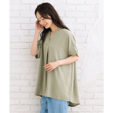 【web限定】【大きいサイズ】 15号(3L) ライトジョーゼットキーネックシャツ