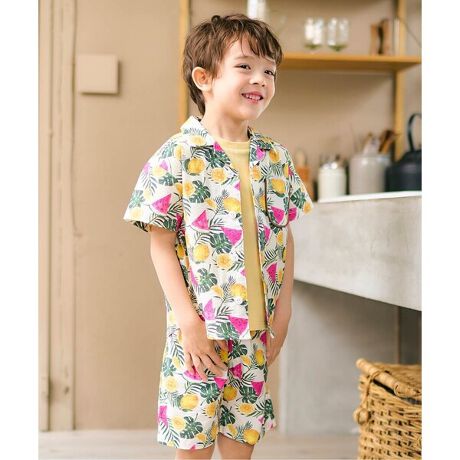 apres les cours(アプレレクール)のシャツ・パンツ「【リンク】チェック・サマーフルーツ柄セットアップ」は、ナチュラルなスタイルにさりげなくデザインをプラスしたおしゃれアイテム*