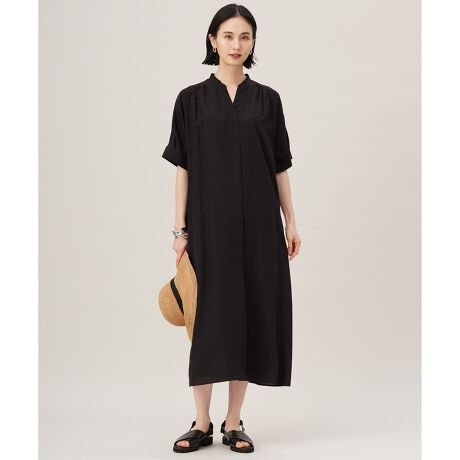 【人気シリーズに、待望の新色が登場】夏も心地よい1枚でサマになるシャツワンピース■デザインバンドカラーのスキッパーシャツワンピースです。身頃から裁ち出しで作る、短めのドルマンスリーブから生まれるフォルムが抜け感を感じられるデザインです。素材の落ち感で着膨れしにくく、ボディラインを拾いにくいゆとりのあるシルエットです。二の腕周りを程よくカバーしながら涼しく着て頂ける、盛夏におすすめの1着です。■素材しなやかな風合いと程よい光沢感、美しいドレープ性が特徴の素材です。さらりとしたタッチで、接触冷感、UVケア、抗菌防臭の機能付きです。■同素材アイテムブラウス(BLWRCA0011)フリルブラウス(BLWRLM0516)