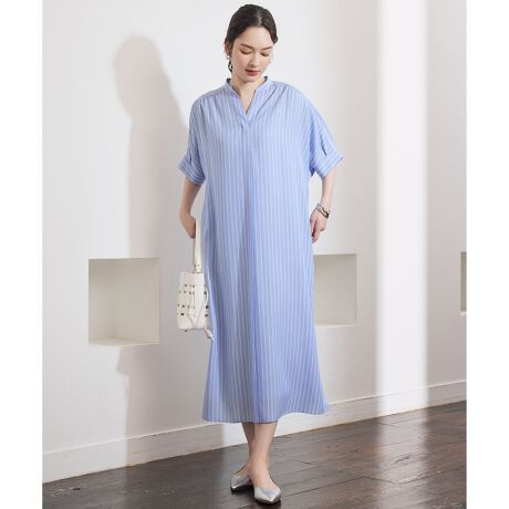 【人気シリーズに、待望の新色が登場】夏も心地よい1枚でサマになるシャツワンピース■デザインバンドカラーのスキッパーシャツワンピースです。身頃から裁ち出しで作る、短めのドルマンスリーブから生まれるフォルムが抜け感を感じられるデザインです。素材の落ち感で着膨れしにくく、ボディラインを拾いにくいゆとりのあるシルエットです。二の腕周りを程よくカバーしながら涼しく着て頂ける、盛夏におすすめの1着です。■素材しなやかな風合いと程よい光沢感、美しいドレープ性が特徴の素材です。さらりとしたタッチで、接触冷感、UVケア、抗菌防臭の機能付きです。■同素材アイテムブラウス(BLW7CA0011)フリルブラウス(BLW7LM0516)