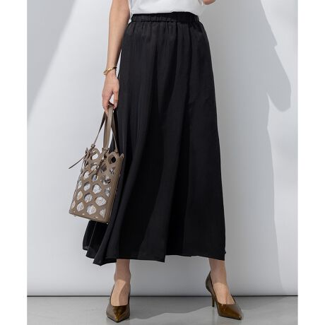 落ち感のある素材で、スッキリとしたラインをつくる上品なギャザースカート