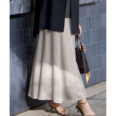 落ち感のある素材で、スッキリとしたラインをつくる上品なギャザースカート