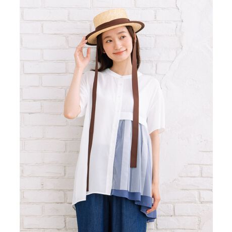 アシンメトリーなチュール使いが目を惹く、チュールコンビバンドカラーシャツ。