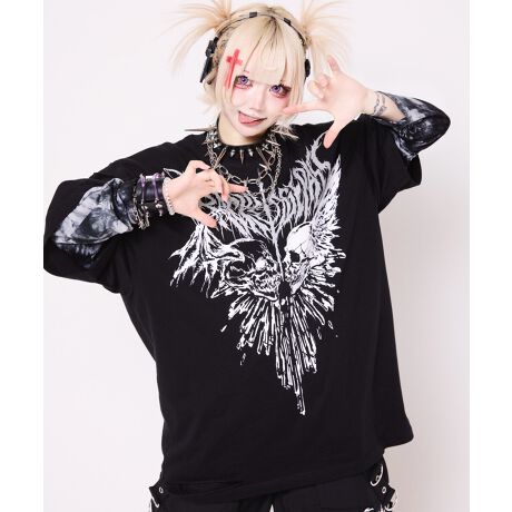 BACKSTAGE PASS(バックステージパス) のANGELUS ET DIABOLUS(アンジェラス エ ディアボロス)ダメージ加工 レイヤード ロンTです。
