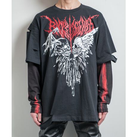 BACKSTAGE PASS(バックステージパス) のANGELUS ET DIABOLUS(アンジェラス エ ディアボロス)ダメージ加工 レイヤード ロンTです。