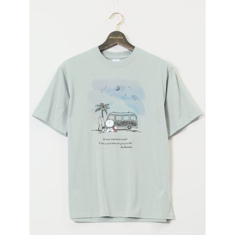 コーディネートの主役アイテムにぴったりな、クルーネックの半袖Tシャツです。アイボリー・ライトグリーンはドラえもんのリゾート風プリント、グレー・黄はジャイアンの左胸の刺繍がポイント。存在感のあるキュートなルックスに仕上げています。