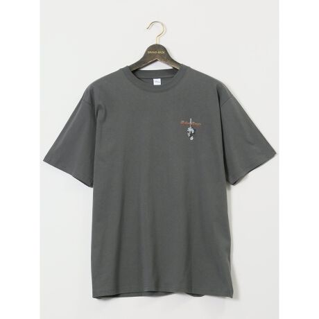 レトロな雰囲気が漂うクルーネックの半袖Tシャツです。かすれたようなプリントでビンテージ風に仕上げており、古着のような色褪せ感がポイント。