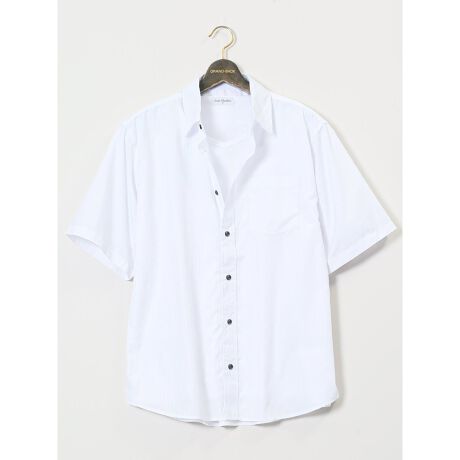 ドビーストライプの半袖シャツはポリエステル・コットンの布帛生地です。インナーの半袖Tシャツはポリエステル・コットンのランダムテレコです。