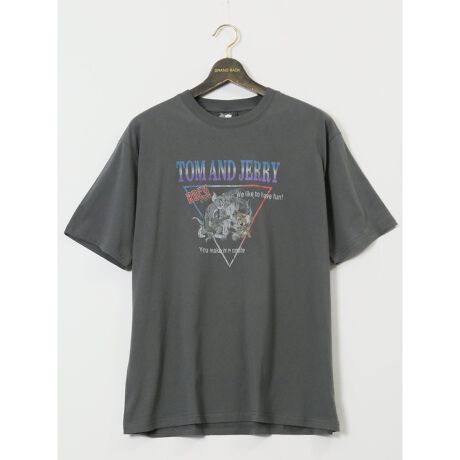 【大きいサイズ】トムとジェリー ピグメント風プリント クルーネック半袖Tシャツ