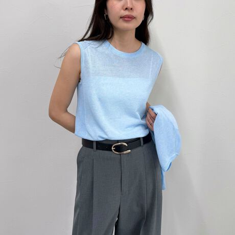 ・リネン混のさらっと軽いニットのノースリーブプルオーバー