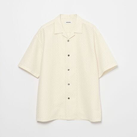 アイレット組織のラッセル素材を使用したオープンカラーシャツ。