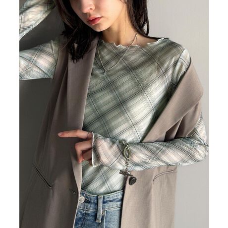 大人レトロでスタイリッシュ。オンブレチェックシアーボートネックメロウトップス(長袖)