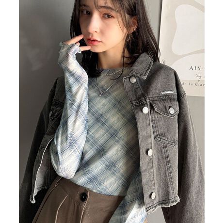 大人レトロでスタイリッシュ。オンブレチェックシアーボートネックメロウトップス(長袖)