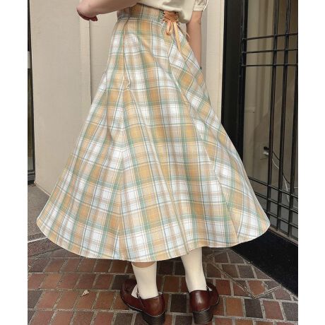シーズンムードの高まる明るいカラーのチェック柄が目を惹くフレアースカート。