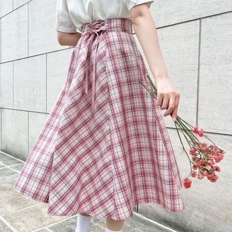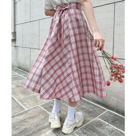 シーズンムードの高まる明るいカラーのチェック柄が目を惹くフレアースカート。