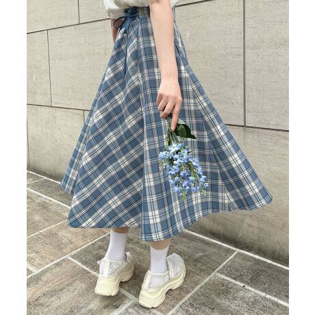 シーズンムードの高まる明るいカラーのチェック柄が目を惹くフレアースカート。