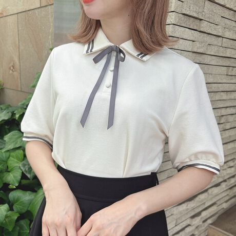 【洗える/吸水速乾】リボンタイ付き ライン入り ポロシャツ