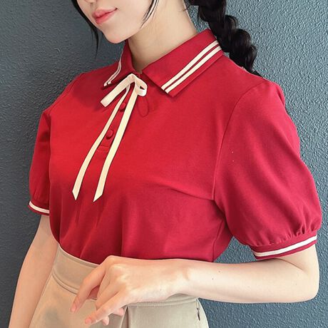 【洗える/吸水速乾】リボンタイ付き ライン入り ポロシャツ