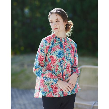 英国LIBERTY社のアーカイブの中から、水彩の総柄で色が層になって重なっていく華やかな印象の“Mary Jean(メアリージーン)”をセレクト。