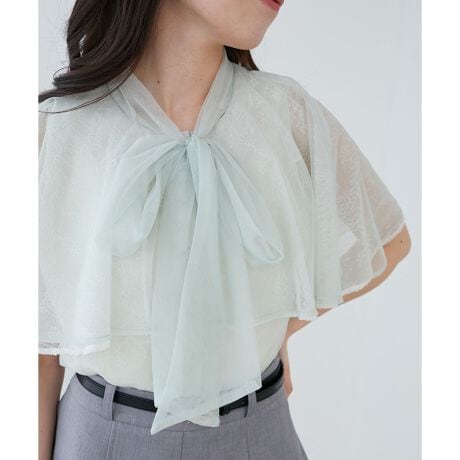 チュールレースボウタイケープブラウス