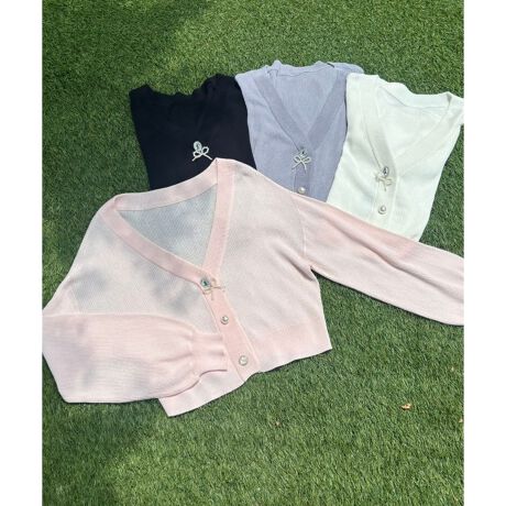 揺れるリボンチャームボタンがアクセントになった、これからのシーズンに嬉しいUVカットカーディガンが登場!