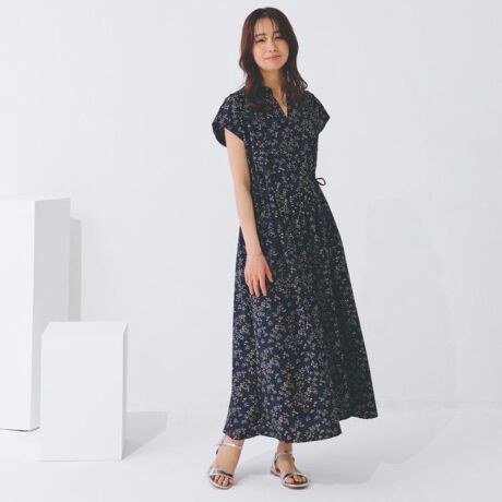 身頃にタックを施して華やかに仕上げたフレンチスリーブのワンピース。