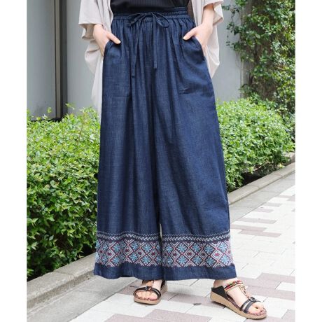 ウエストゴムで締め付け感がなく楽に穿けるのがポイント。